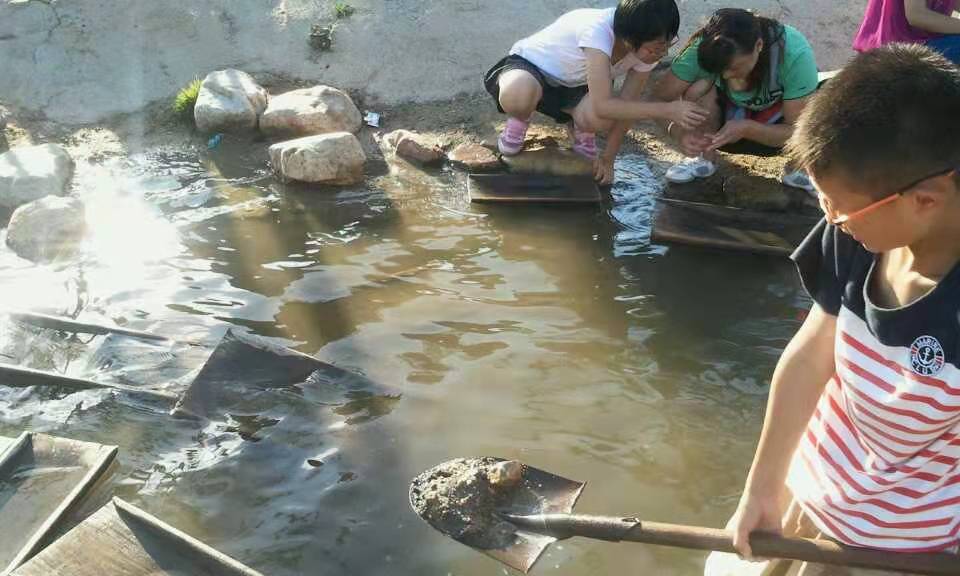 我也小试一把,金沙淘洗后,木盘底剩下的是闪闪发光的细小金沙,很惊喜,但无缘金豆了。