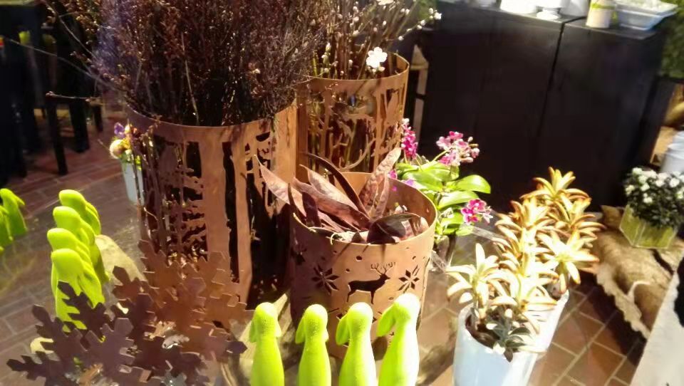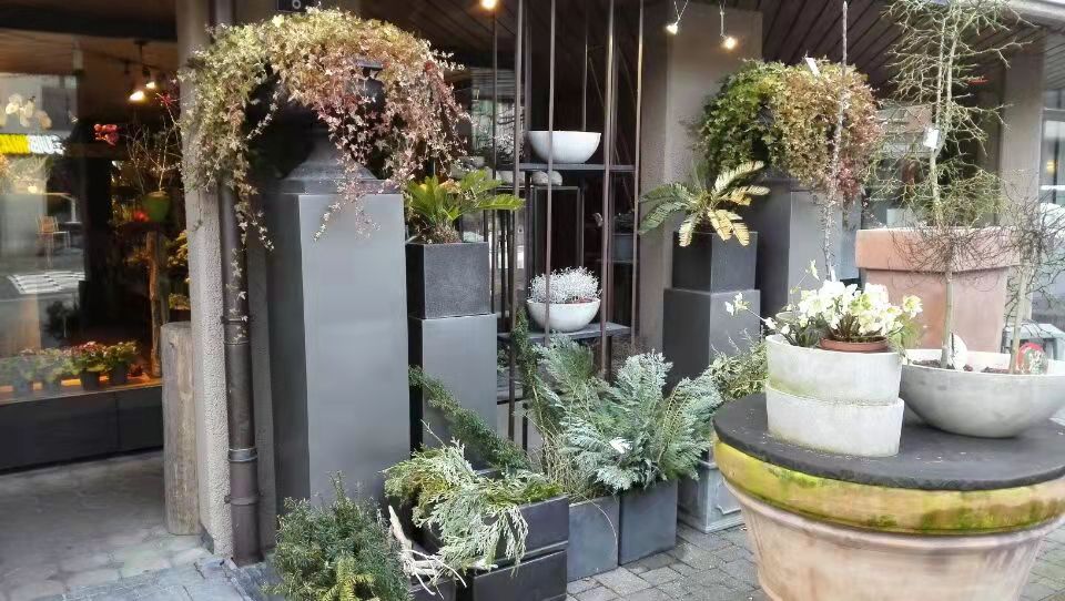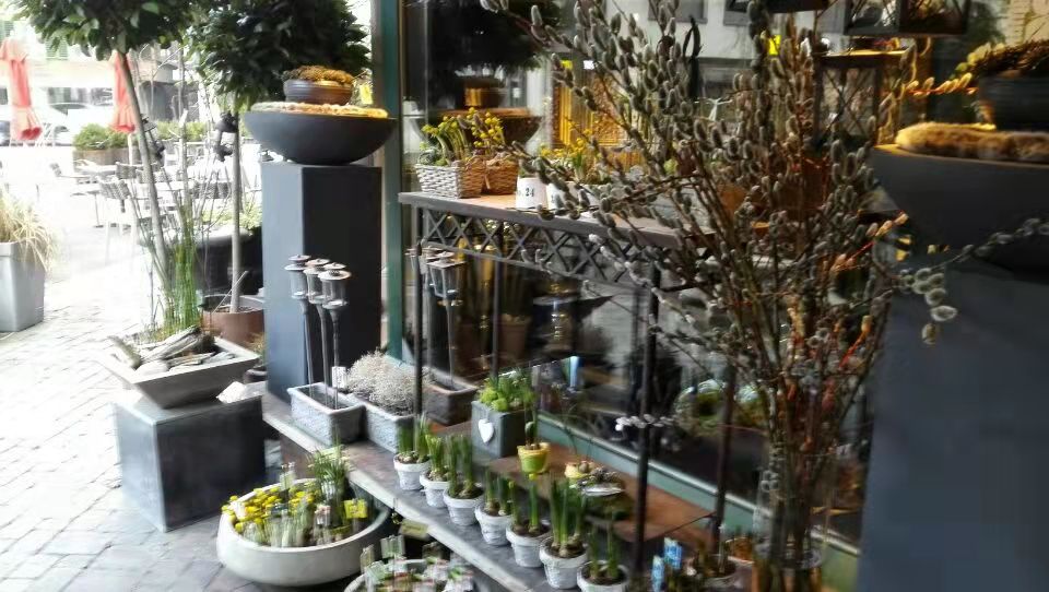 作为一名花卉植物控,走到哪里不逛逛花店,那就不是我了。花店门前,摆饰是不是很有艺术气息?我非常愿意活在这样的艺术气息里。一个石盆,几束枯枝,简单,简朴,有韵味。