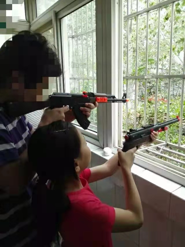 双枪 。带橡皮弹,打窗外偷吃葡萄的小鸟。