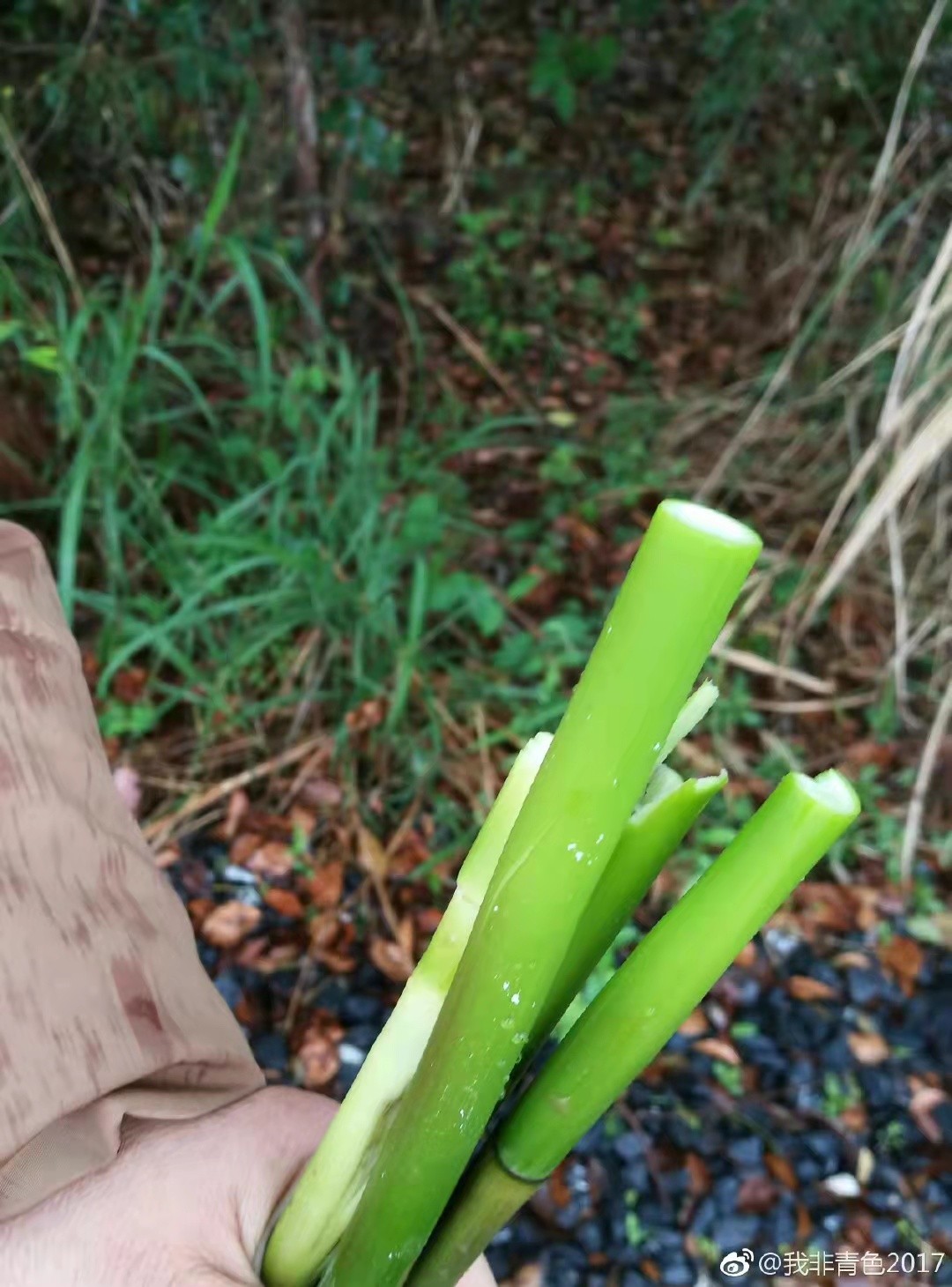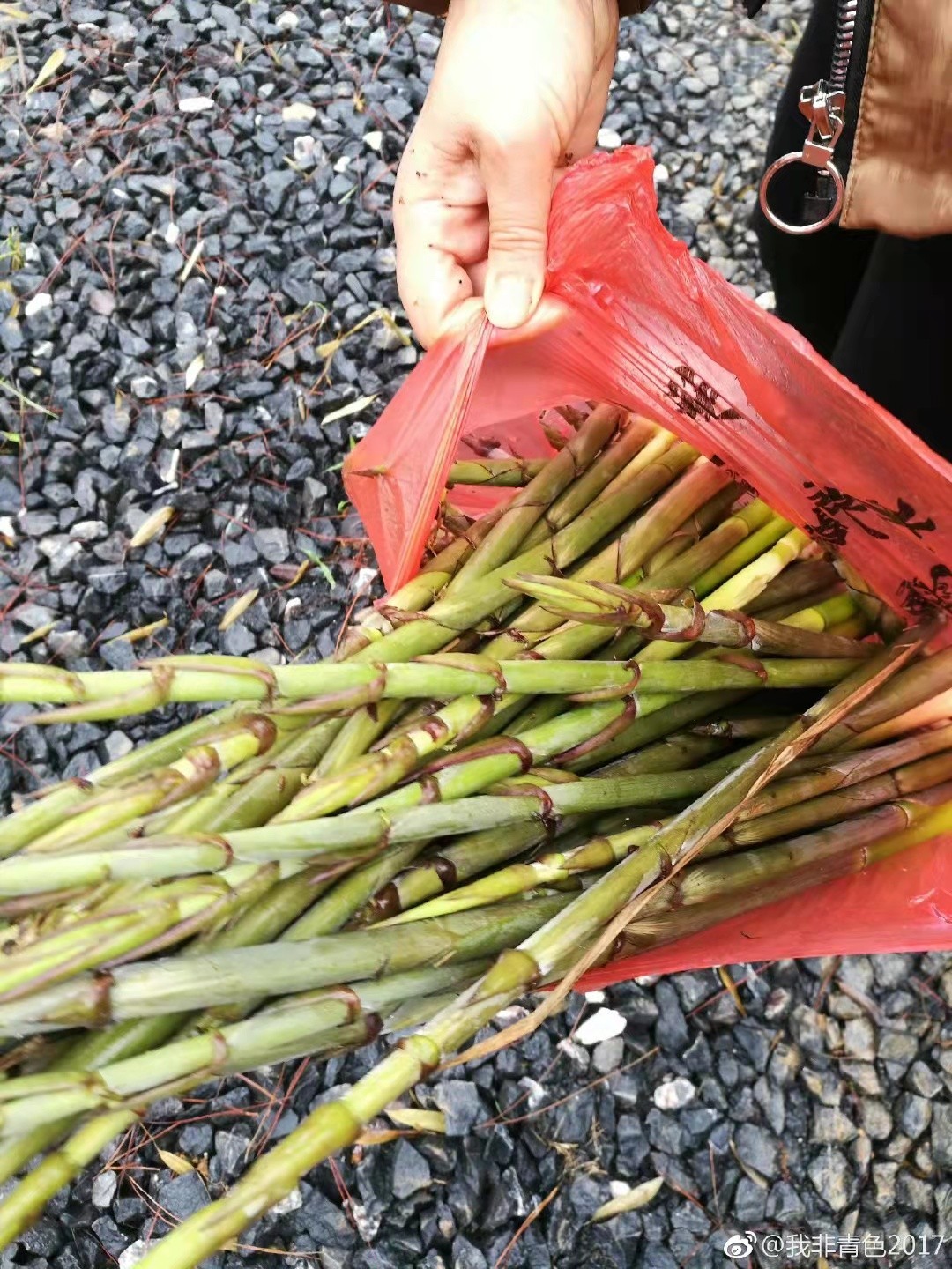 竹林茂密。刚才几分钟扒了这么多,纯天然原生态无污染的竹笋。午饭就可以炒了。