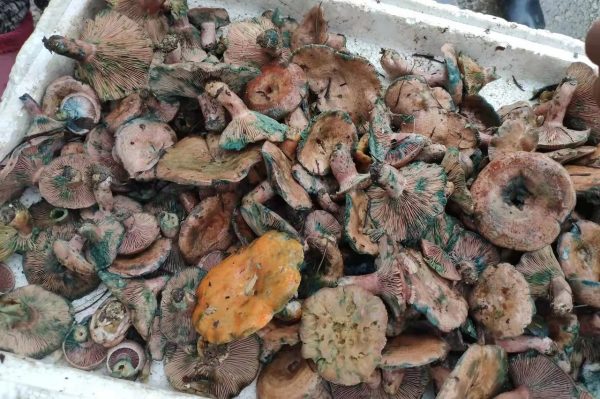 5.图的花绿色蘑菇,商贩讲是山上野生。这几天每个市场都有见到,今天更是看到很多人在卖,感觉并不如他讲的那么稀奇稀缺。不知是何品种。45-50/斤。