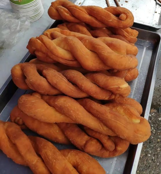 3. 炸油饼很夸张,这儿的不按个卖,按斤称,所以油饼特大个,是北京那边个头的三四倍,可以切开只买一小块。