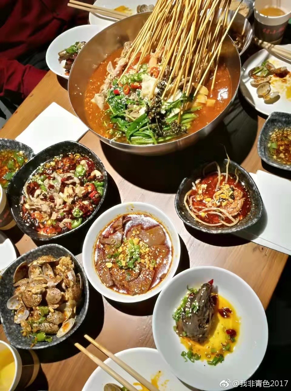 去杭州吃了几次杭帮菜,口味已改良,已不甚清淡,鲜咸必备,色味俱佳。然而,甚符合粗言一句 : 嘴里淡出个鸟来。在北京已粗茶淡饭许久,“无辣不欢”已成昨日黄花。出来一次怎不大快朵颐。来吧,逛完白堤来以下这么辣辣的一顿,饭后正好下雨,带着胸腹间的熊熊燃烧之辣气,打伞再逛苏堤。