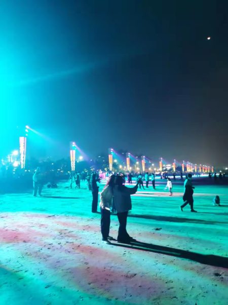 3.海边竖立起绵延几公里的大型灯光秀,不再是夜晚静默的海岸线。
