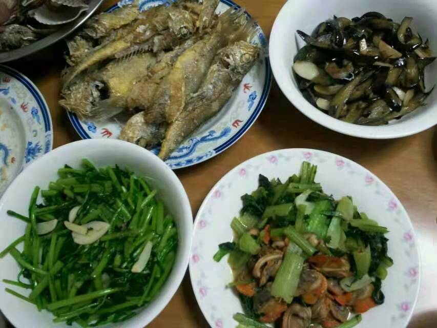 昨天开始海鲜有点吃不动了,晚饭是炸黄花鱼,扇贝。饭后在家里跺歩一小时,还好空间够大。