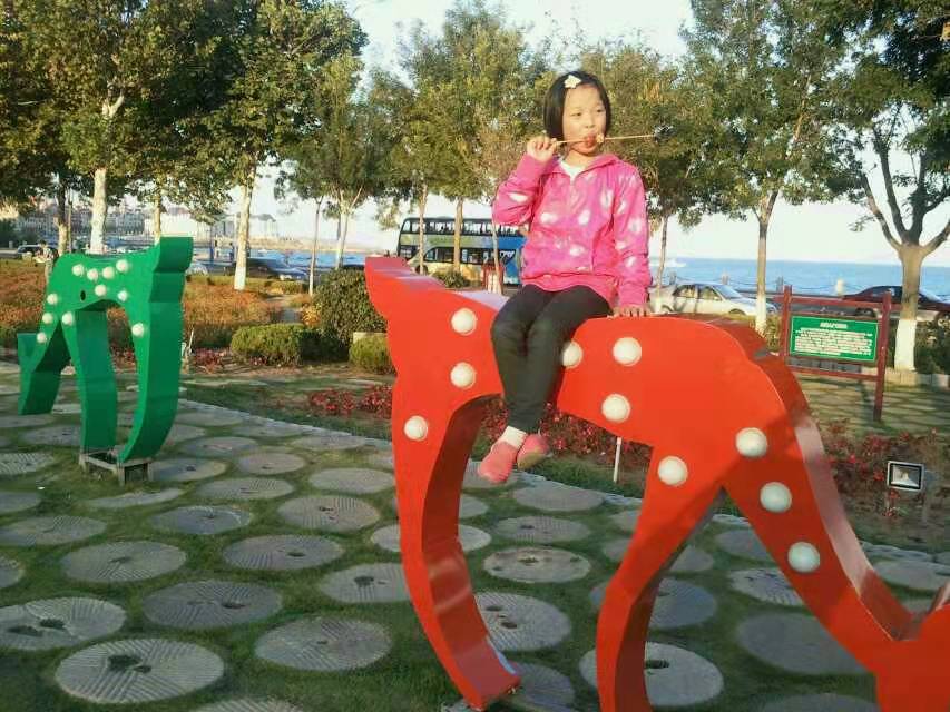 最后一张图,宝贝骑鹿吃糖葫芦,怎么有点像牧童遥指杏花村呢?有点不搭啊