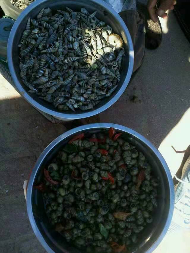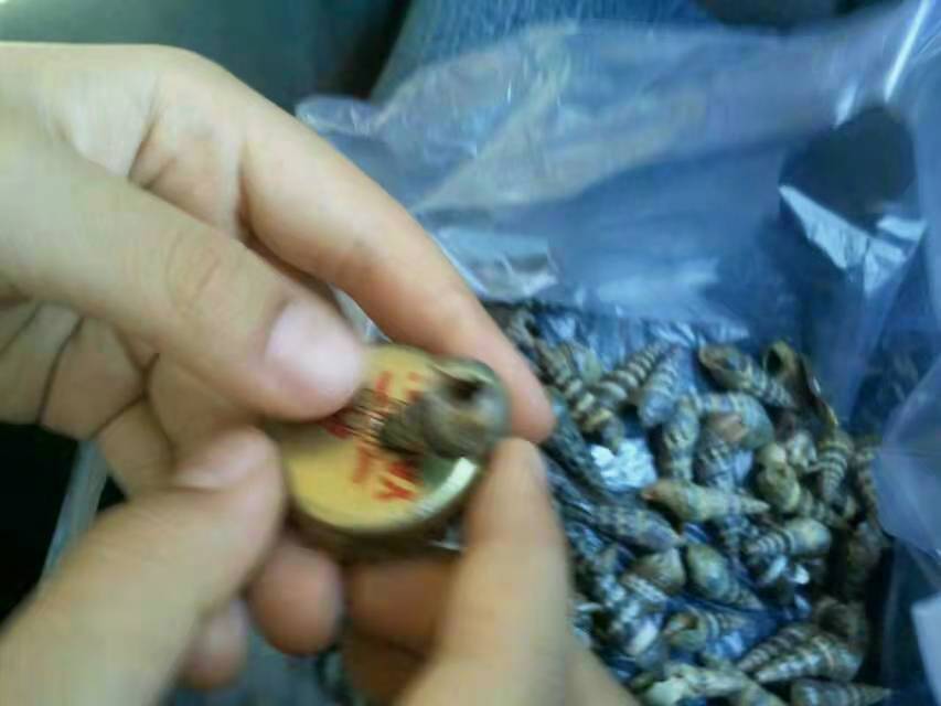 怎么吃呢?婆婆给了个中间钻了眼的啤酒瓶盖。将尖细的螺尾卡在眼里一按,螺尾断掉。从螺口一吸,鲜美的螺肉入口了。